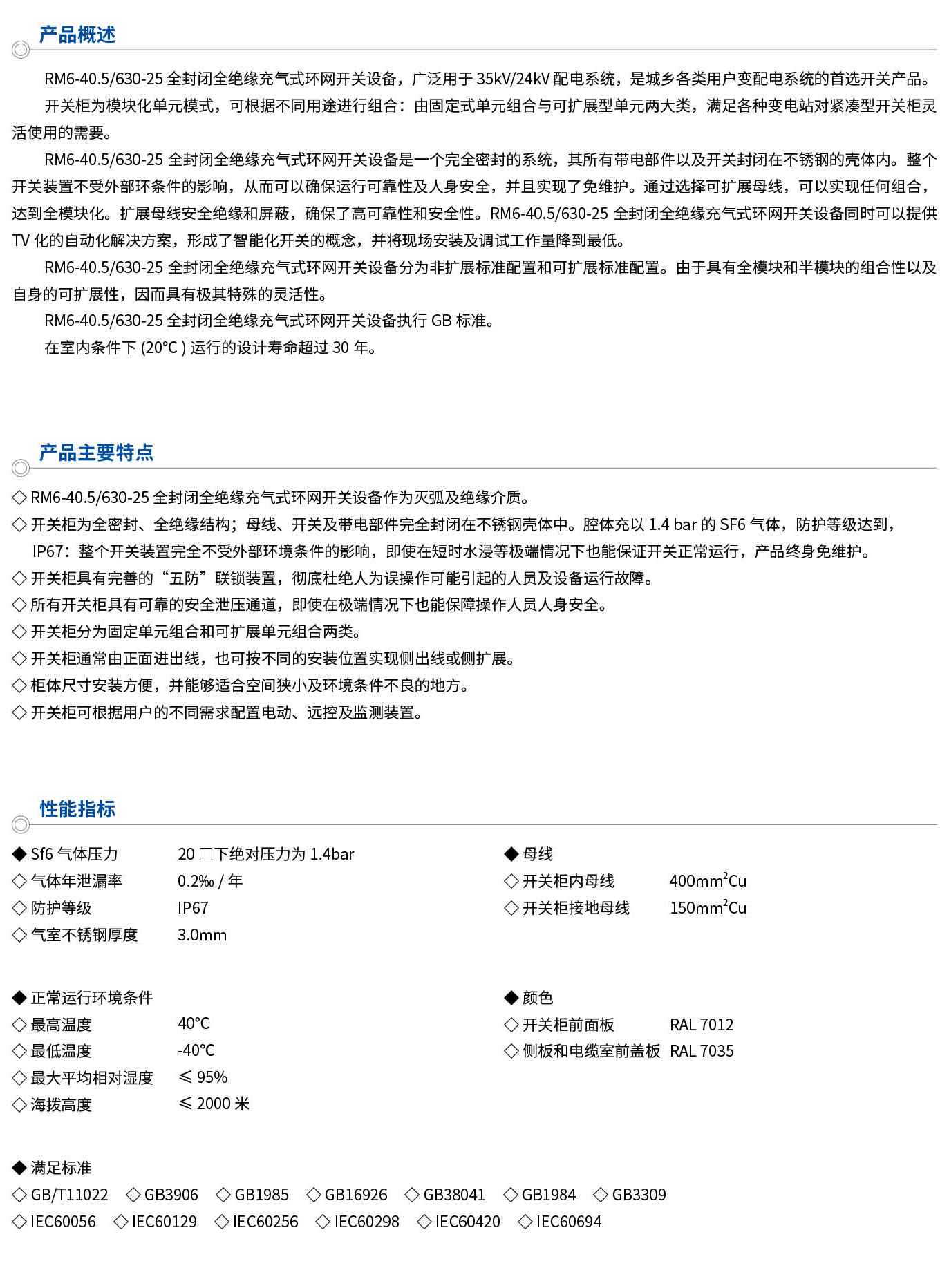 RM6-40.5/630-25全封閉全絕緣充氣式環網開關設備