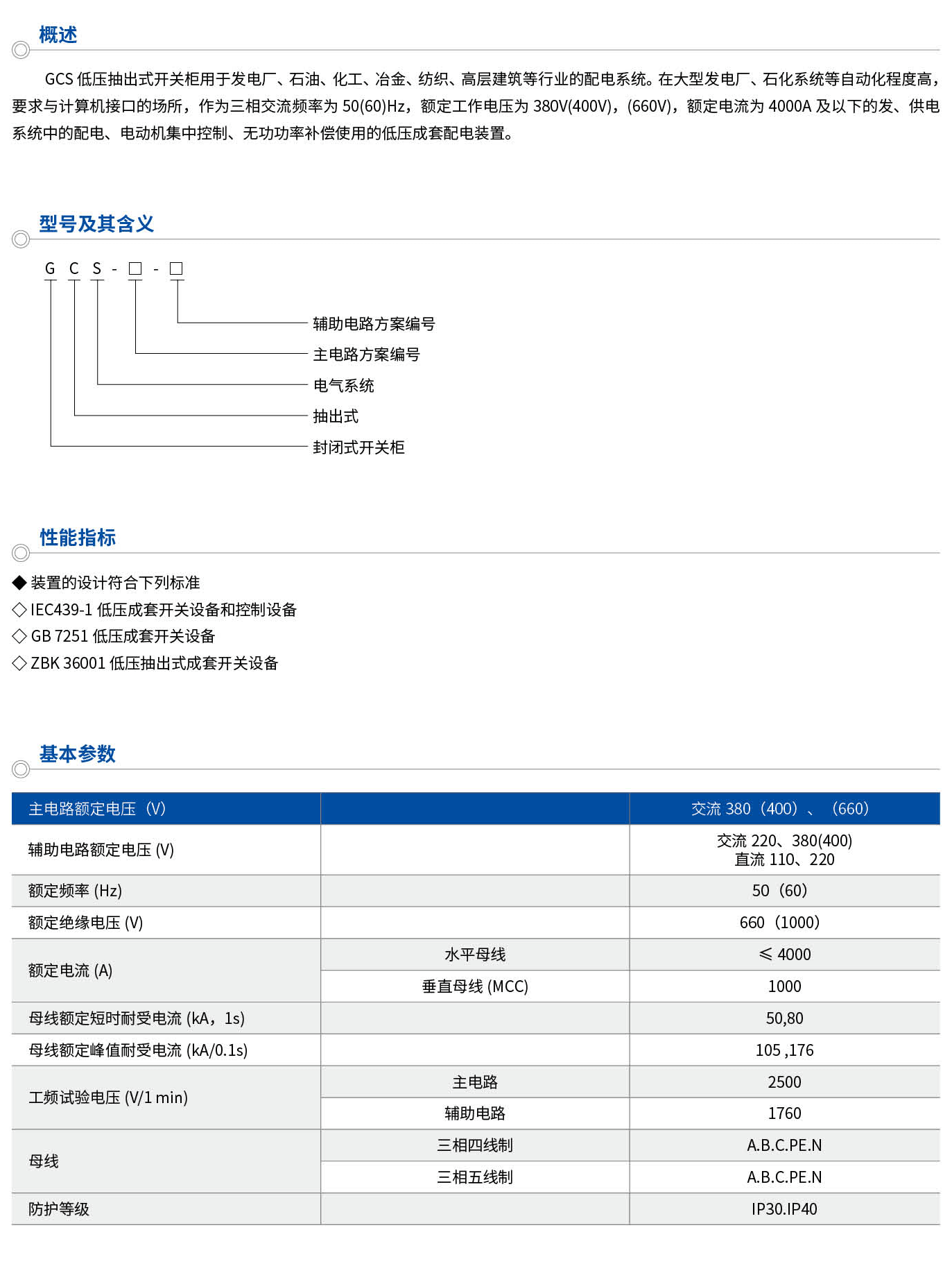 GCS低壓抽出式開關柜用于發電廠、石油、化工、冶金、紡織、高層建筑等行業的配電系統。在大型發電廠、石化系統等自動化程度高,要求與計算機接口的場所,作為三相交流頻率為50(60)Hz,額定工作電壓為380V(400V),(660V),額定電流為4000A及以下的發、供電系統中的配電、電動機集中控制、無功功率補償使用的低壓成套配電裝置。